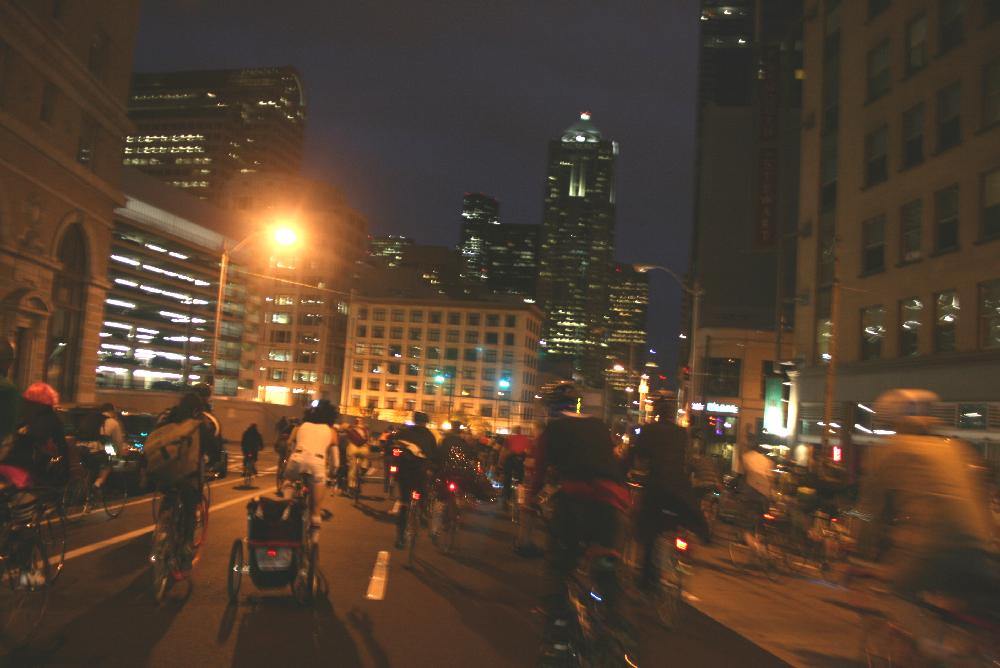 Last night we toured the city in style in a huge costumed Critical Mass bike ride. This morning the sun is shining on Seattle. Happy Hallowe’en!