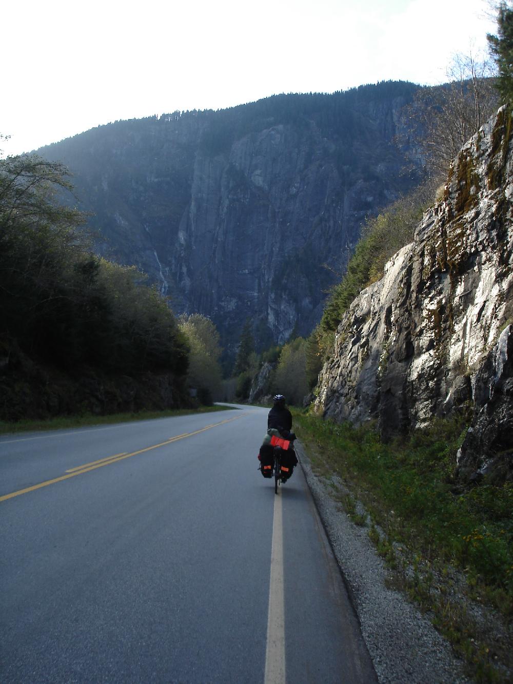 Depuis trois jours, le vent dominant du Nord nous a littéralement transporter de Terrace à Prince Rupert. Il a fait avancer nos montures de cent livres à 57km/heure sur le plat. On se sent fort dans ces moments là! Par contre, on se sent moins fort quand le même vent souffle toute la nuit à en faire virevolter la tente dans toutes les directions. Une nuit blanche à s’inquiéter si elle allait tenir bon jusqu’à l’aube sans se déchirer…