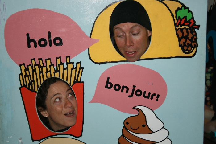 After some fierce gesturing, deadpan earnestness, half-truths and veiled threats, we were on a train under the Bay. We popped out at West Oakland Station, and were met by Simon, old friend, ex-messenger, one-time Montreal flatmate and international man of mystery. After perhaps the sketchiest ride of my life along the shoulderless speedways of the East Bay’s industrial wasteland in the dark, we finally got unloaded in Simon’s storefront apartment in Fruitvale (sounds more… um… bountiful than it is). Our gracious host then led us to the taqueria (Mexican fast food restaurant) of our dreams. We were famished; riding into a big city really screws up our snacking system, as it always takes longer than seems possible and there’s rarely a good place to pull over and make a sandwich. The $6 “super burrito” weighed about 3 pounds – I kid you not. Lucie made hers disappear in about 6 minutes and had a stomach ache for four days. I opted for a doggy bag.